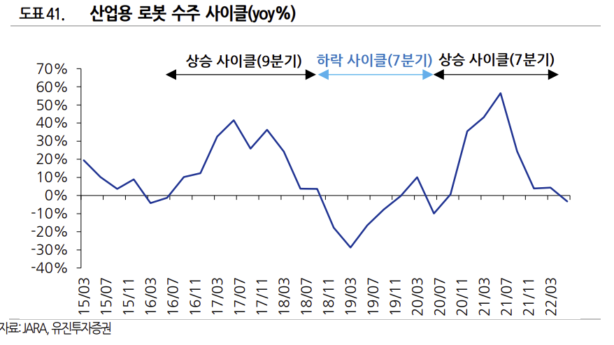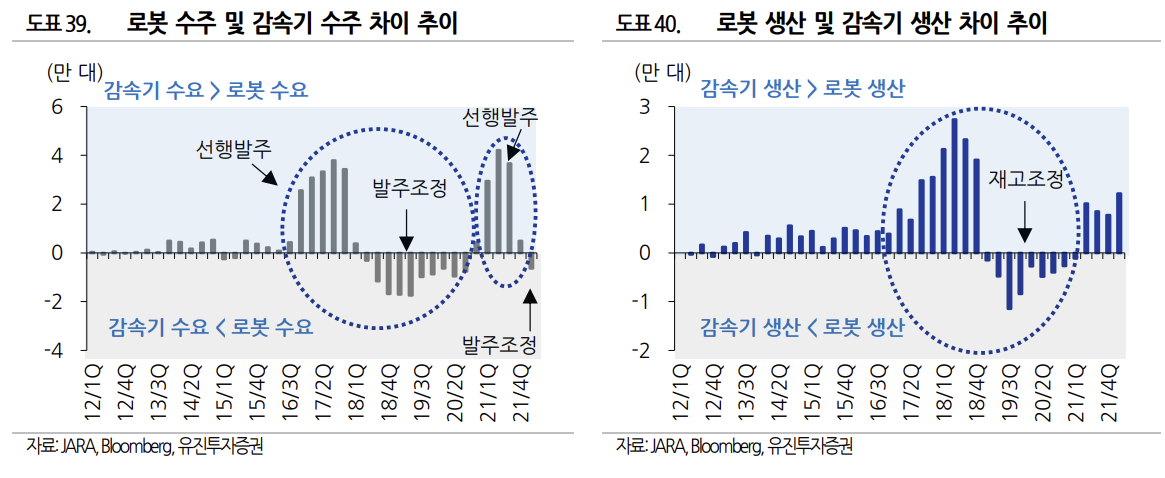 과거 로봇 수주 사이클을 고려할 때 상승 사이클으로의 전환 시기는 2024 년 하반기로 예측된다. 감속기 수주가 로봇 수주의 3~6 개월 정도 후행하고 있는 점을 고려하면, 감속기 수주의 상승 전환 은 2025 년 상반기로 전망해볼 수 있다. 다운 사이클에 접어드는 2022 년~2024 년에는 2021 년 대 비 저조한 수주 실적이 예상되고, 이러한 상황 속에서 HDS 는 생산 인력을 재차 조정할 가능성이 크다. 미래에 같은 문제를 또 다시 반복하게 될 가능성이 높다.