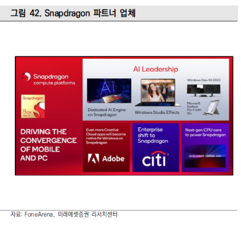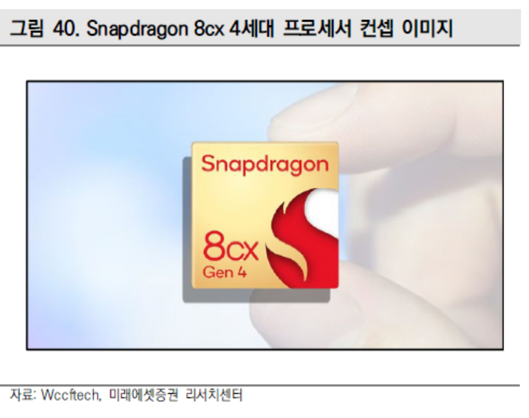 Qualcomm은 지난 11월 차세대 CPU 모델인 Oryon을 발표했다. 이번 PC향 Snapdragon 8cx 4세대 프로세서에 부속 부품으로서 첫 출하가 이루어 질 것으로 보인다. Oryon CPU에 탑재된 새로운 프로세서들은 Hamoa라는 코드네임하에 10월에 공개될 예정이며 1H24 제품 발매가 예상된다.