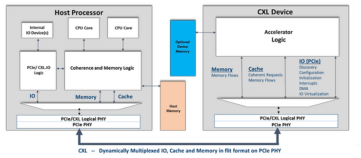 - 저지연/고대역폭: 기존 PCIe 대비 수십~백 배 높은 대역폭(PCIe5·6 활용, 최대 128GB/s), DRAM 수준의 저지연 연결