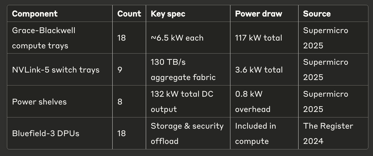 | CPU/GPU 구조 | Grace Blackwell Ultra, 288GB HBM3e, 최대 1,400W GPU | Grace Blackwell, 192GB HBM3e, 최대 1,000W GPU |
