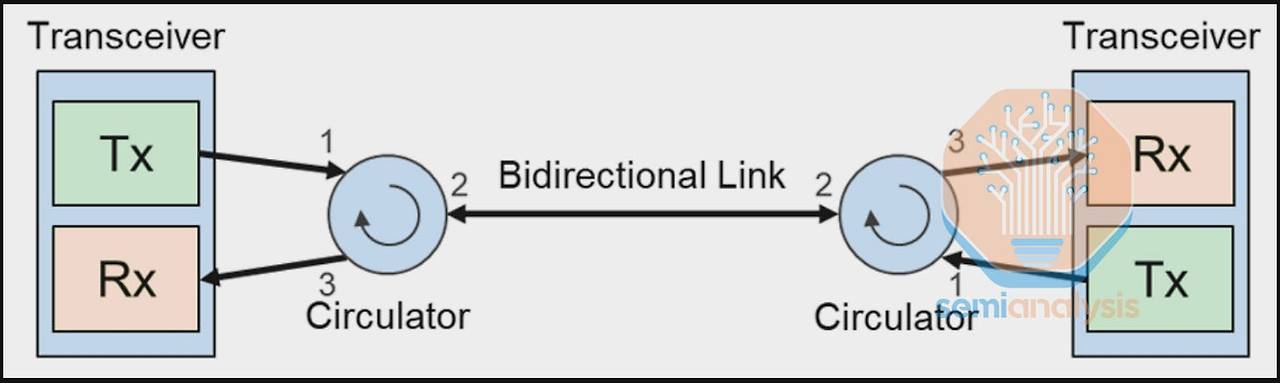 - 광 서큘레이터 (Optical Circulator): 일반적으로 송신(Tx)과 수신(Rx)에 각각 하나씩, 총 두 가닥의 광섬유가 필요한 양방향 통신을 단 한 가닥의 광섬유로 가능하게 만드는 부품입니다. 서큘레이터는 트랜시버에서 나가는 송신 신호와 외부에서 들어오는 수신 신호를 분리하여, 단일 광섬유 가닥으로 양방향 통신을 구현합니다.