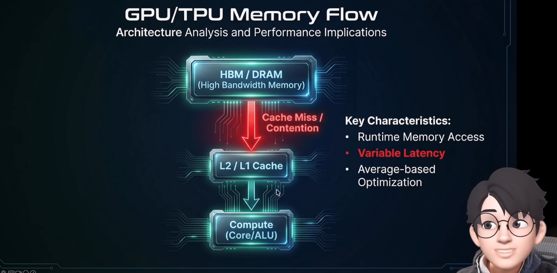 하드웨어가 캐시(Cache), HBM 등 여러 계층의 메모리와 동적으로 상호작용하며 명령을 처리하기 때문에, 특정 작업이 언제, 얼마나 걸려 완료될지 정확히 예측하기 어렵습니다.